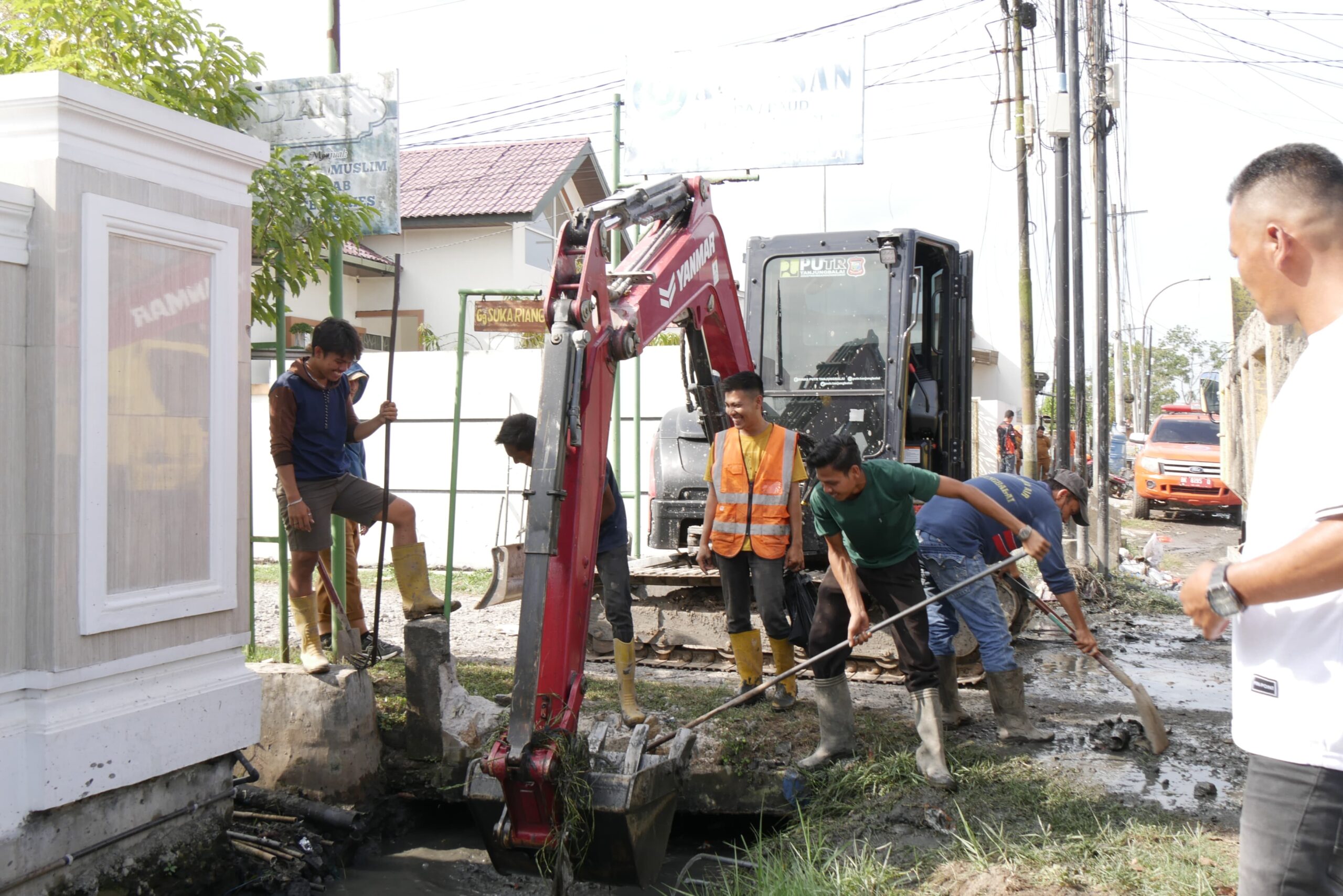 Pengerukan Drainase dilakukan menggunakan alat berat milik Dinas PUTR.