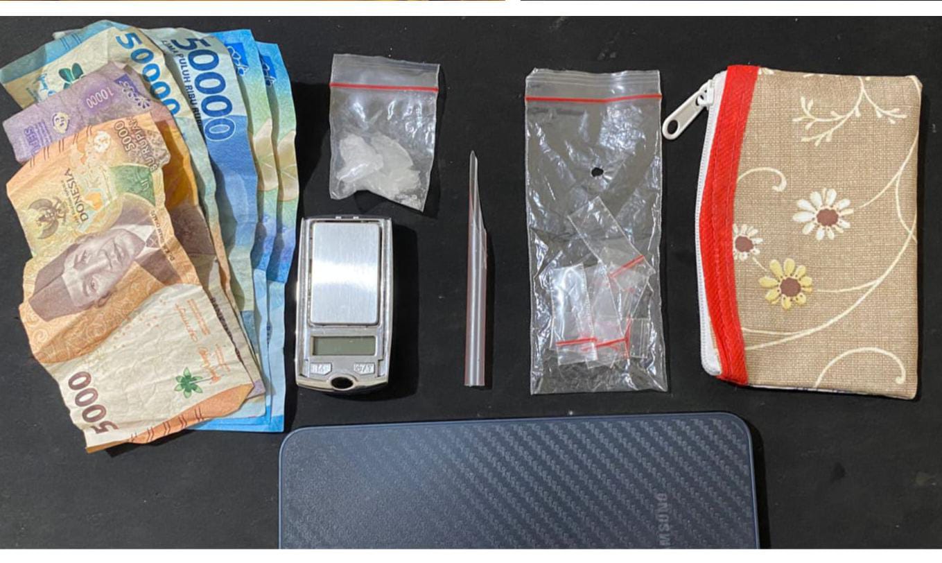 ‎Dari hasil penggeledahan, Personil Satresnarkoba berhasil mengamankan barang bukti berupa, 1 (satu) buah plastik klip transparan berukuran sedang berisikan narkotika jenis sabu, berat brutto: 2,66 gram, 1 (satu) buah plastik klip transparan berukuran besar kosong, 5 (lima) buah plastik klip transparan berukuran kecil kosong, 1 (satu) unit timbangan elektrik, 1 (satu) buah pipet plastik berbentuk skop, 1 (satu) buah dompet berwarna coklat, 1 (satu) unit handphone android merk Samsung berwarna hitam dan Uang tunai Rp. 215.000,- (dua ratus lima belas ribu rupiah).