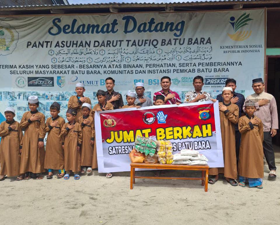 Batu Bara, Harianpesisir.com – Satuan Reserse Narkoba (Satresnarkoba) Polres Batu Bara melaksanakan kegiatan Jumat Berkah dengan mengunjungi dan memberikan bantuan kepada anak yatim piatu di Panti Asuhan Darut Taufiq, Desa Guntung, Kecamatan Lima Puluh, pada Jumat (27/02/2026).