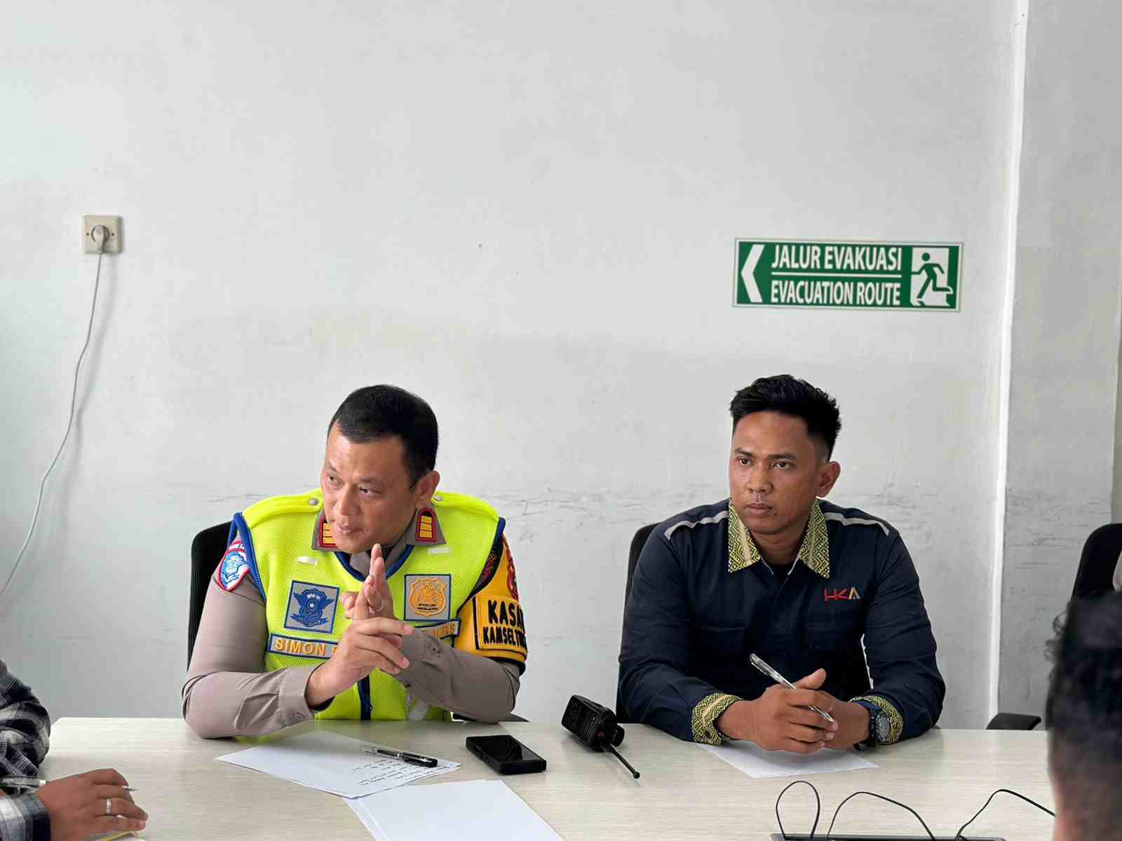 Batu Bara – Dalam rangka meningkatkan upaya pencegahan kecelakaan lalu lintas dan menyosialisasikan Operasi Ketupat Toba 2026, Satuan Lalu Lintas (Satlantas) Polres Batu Bara menggelar rapat koordinasi dengan pihak pengelola jalan tol Hutama Karya pada Sabtu (14/03/2026) sekitar pukul 11.00 WIB di Pintu Gerbang Tol Lima Puluh. Kegiatan ini dihadiri langsung oleh Kepala Satlantas Polres Batu Bara AKP Simon E. Simatupang, S.H., M.H., beserta jajaran Kanit dan personel Satlantas Polres Batu Bara.