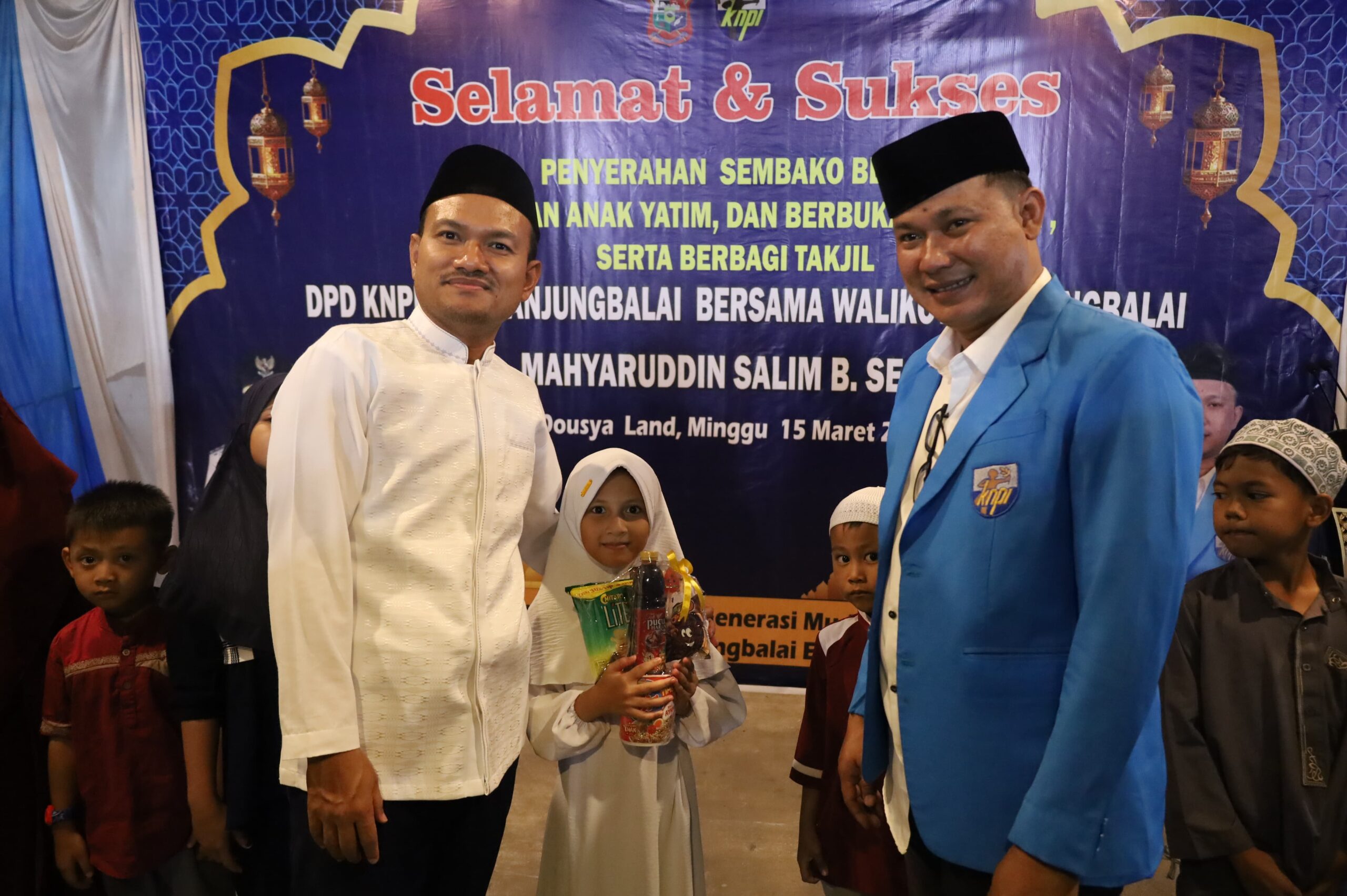 Tanjungbalai, Harianpesisir.com – Wali Kota Tanjungbalai Mahyaruddin Salim menghadiri acara buka puasa bersama yang diselenggarakan oleh Komite Nasional Pemuda Indonesia (KNPI) Kota Tanjungbalai sekaligus penyerahan sembako beras, santunan anak yatim dan pembagian takjil yang berlangsung di Cafe Dousya Land, Jalan Sudirman, pada Minggu (15/3/2026)