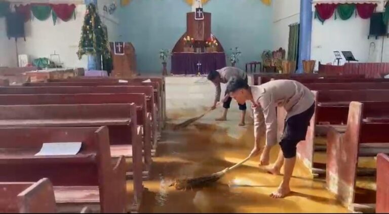 Brimob Polda Sumatera Utara Lakukan pembersihan di Gereja Hutanagodang Pasca Bencana