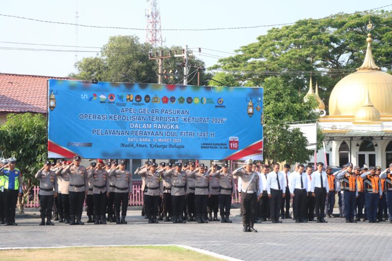 BATU BARA – Polres Batu Bara melaksanakan Apel Gelar Pasukan Operasi Ketupat Toba 2026 dalam rangka pengamanan perayaan Hari Raya Idul Fitri 1447 H pada Kamis (12/03/2026) di Lapangan Apel...