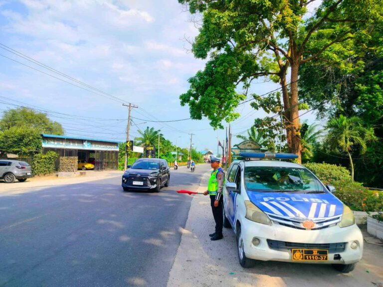 Akhir Pekan, Sat Lantas Polres Batu Bara Kembali Ingatkan Pengendara dengan “Kibas Bendera Merah” di Jalinsum Indrapura